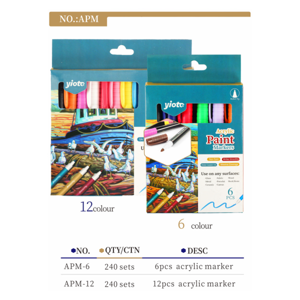 Acrylic Markers, 6 colors/12 colors
